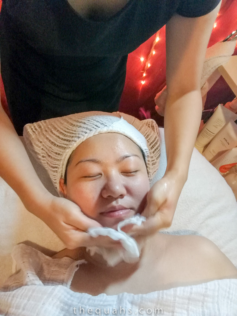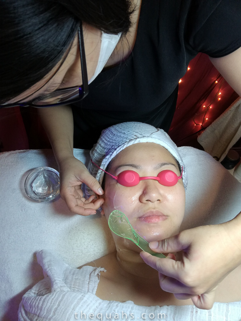 So, I made an appointment and was told the treatment would take approximately 2 hours. At the same time I removed my eyelash extensions since it was time to give my own eyelash a break and some pampering. Changed into a tube-like gown and was given an exfoliating treatment. The scrub used is pretty gentle, since it could also be used on sensitive skin and even around my eye area!