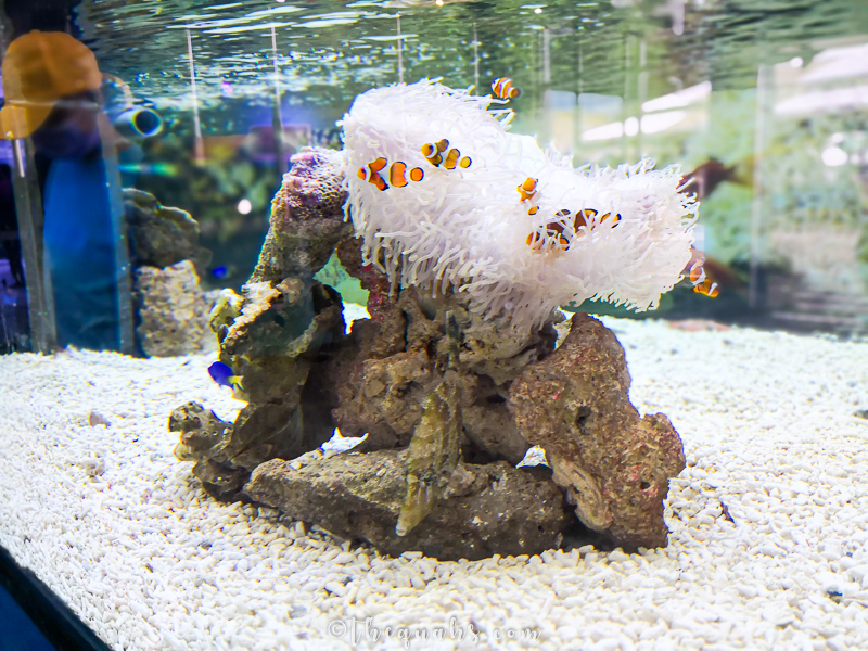 Inside is air conditioned. You will find many different types of sea fishes, corals and sea creatures like seahorses in different aquarium setups. From lion fish to sea horses; sea anemone to coral fishes; you can even find a display area with ‘disco lights’.
